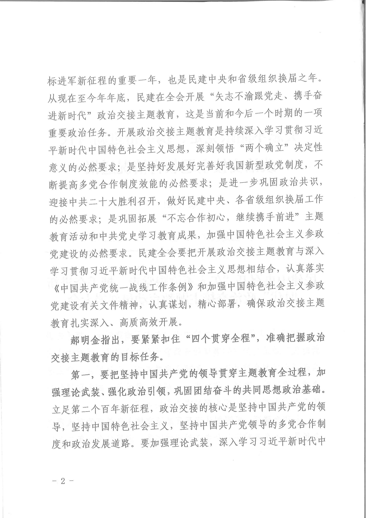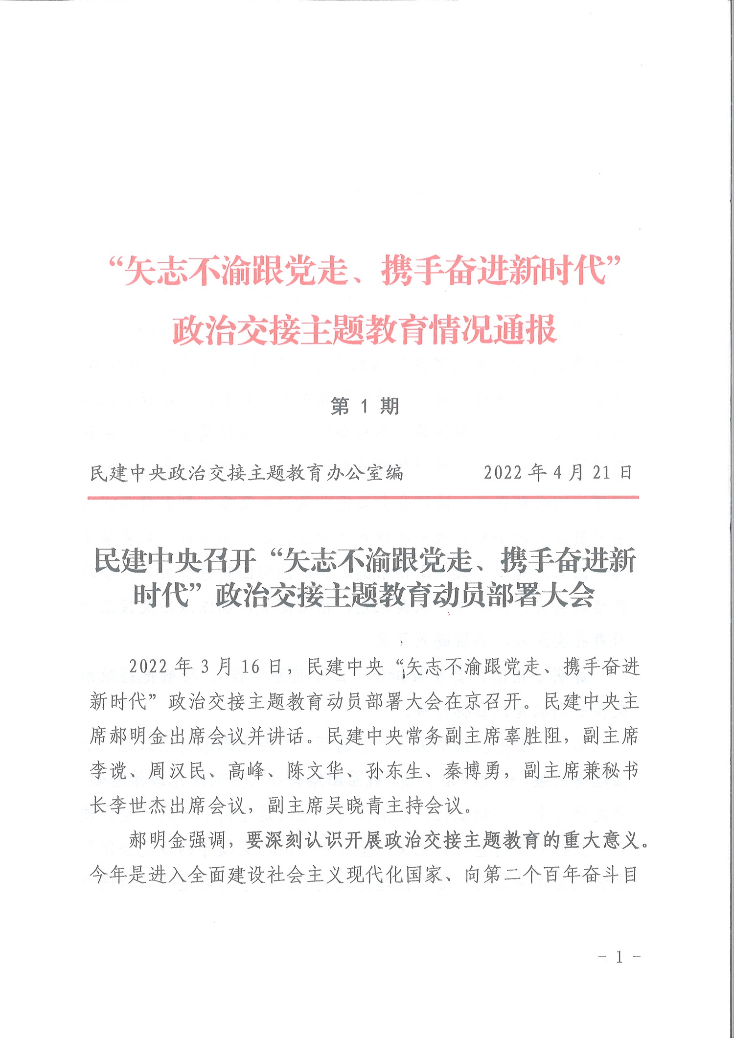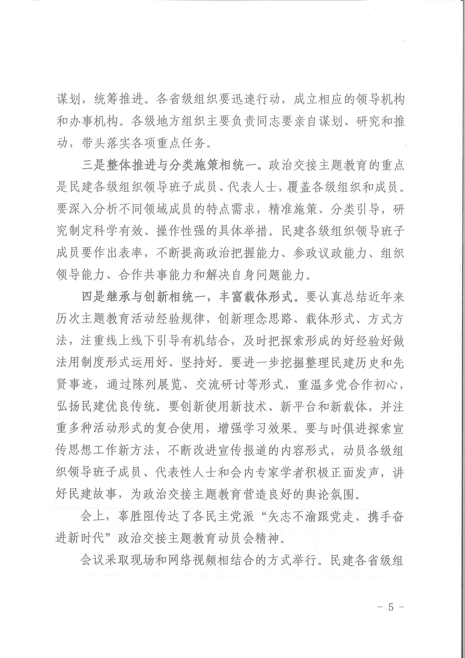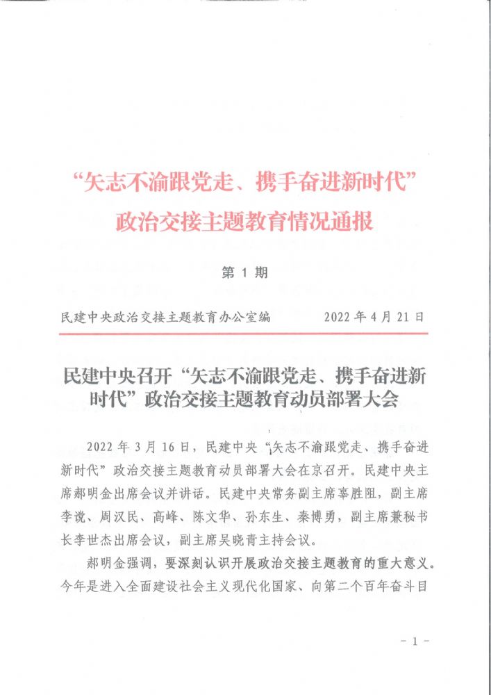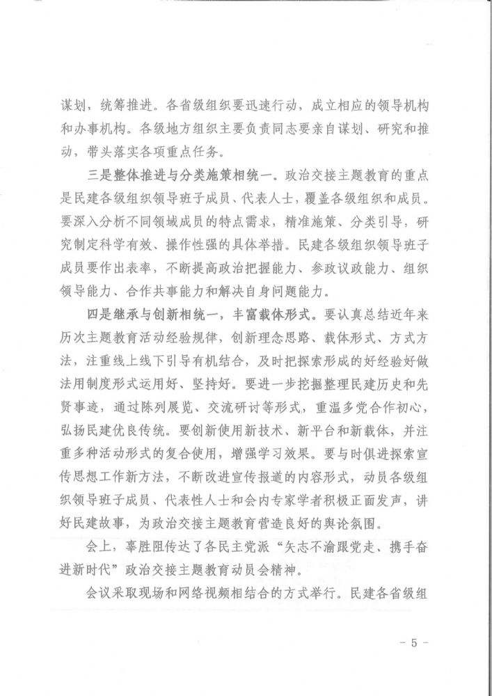 民建中央召開“矢志不渝跟黨走、攜手奮進新時代”政治交接主題教育動員部署大會