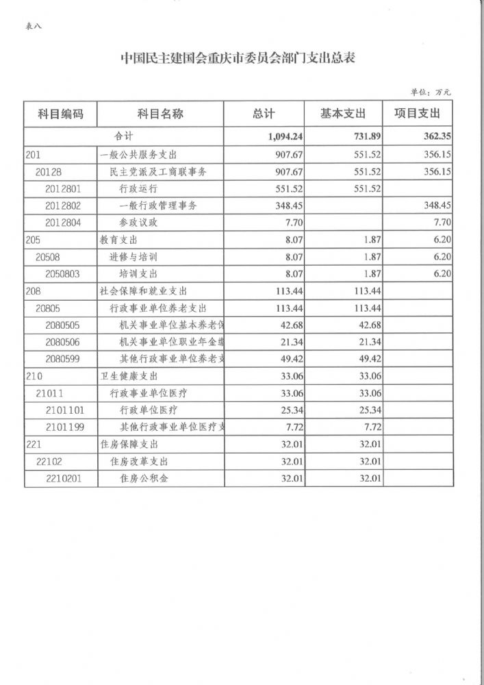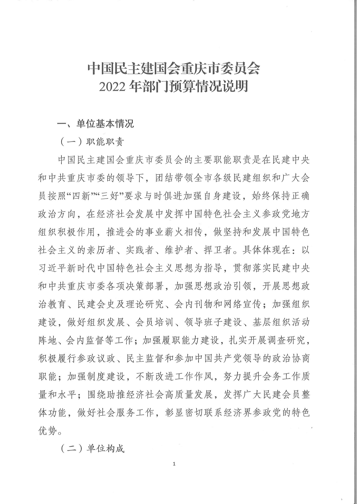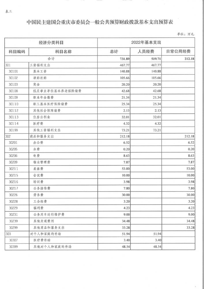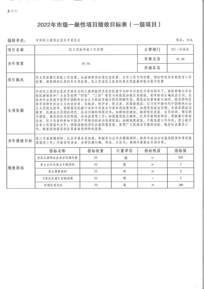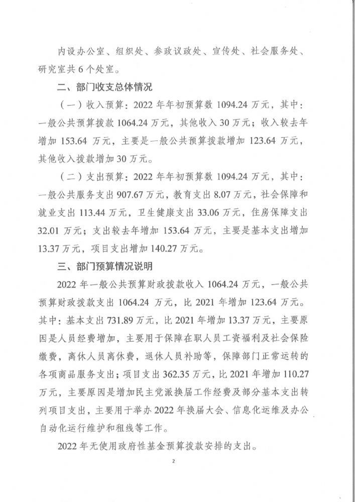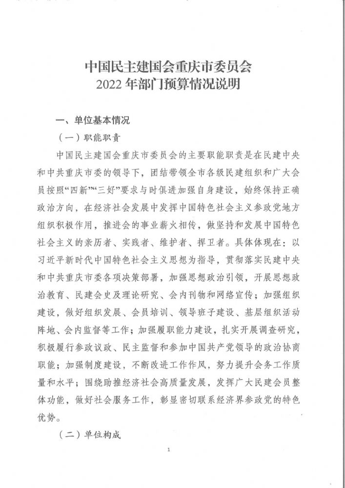 中國民主建國會重慶市委員會2022年部門預算情況說明