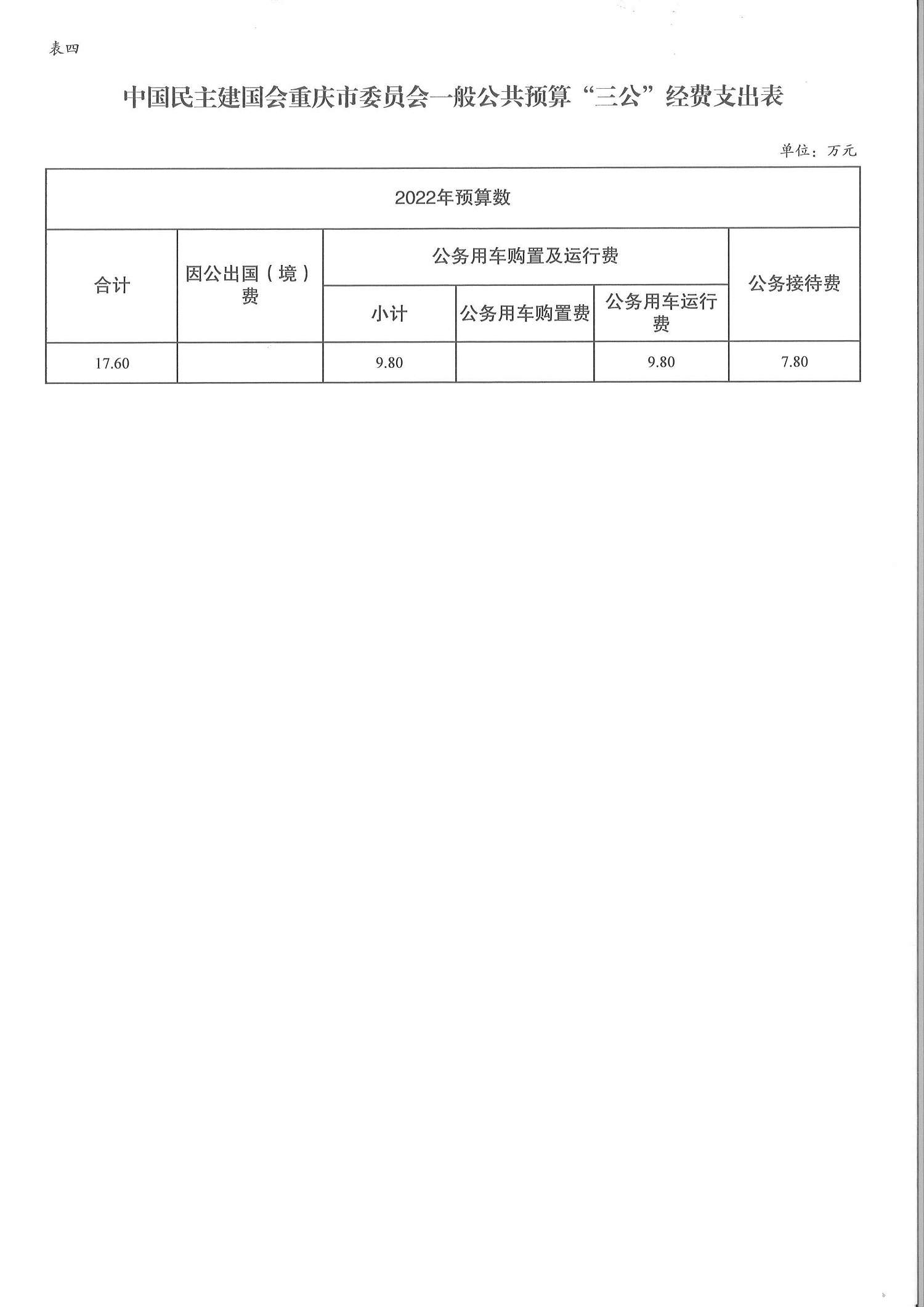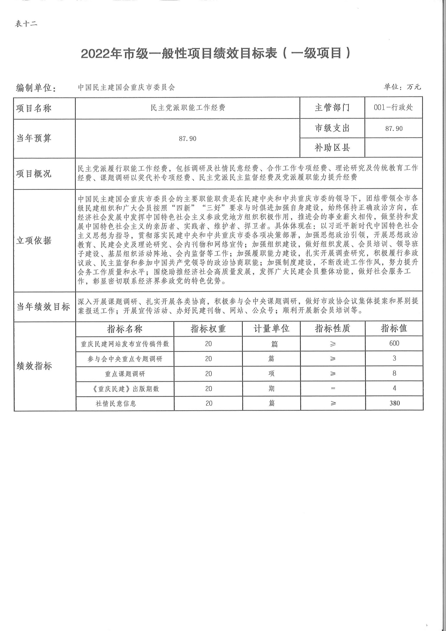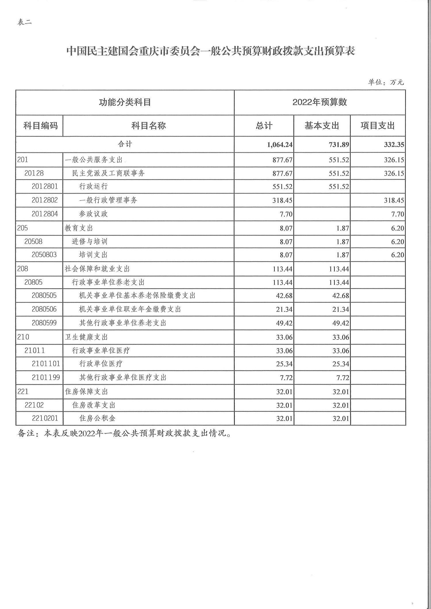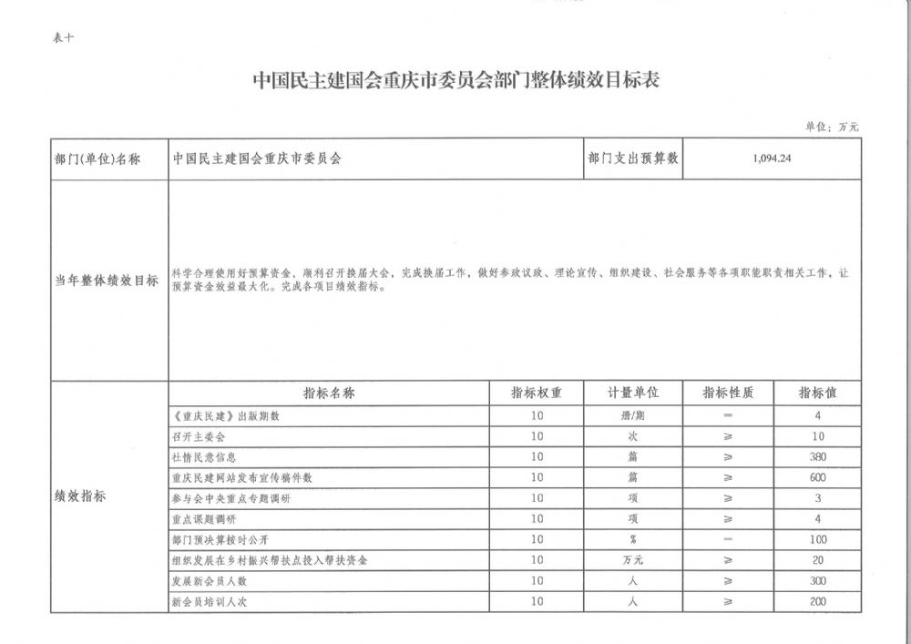 中國民主建國會重慶市委員會2022年部門預算情況說明
